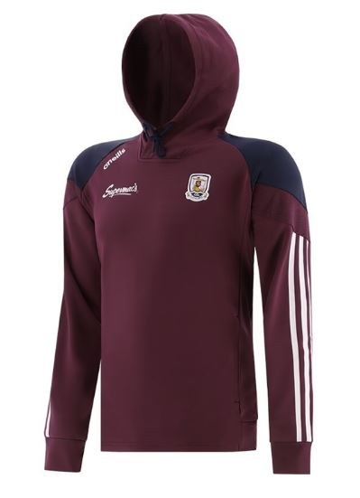 Pull on the Kids' Galway GAA Rockway Pullover Hoodie and show your support for your county. This overhead hoodie features a soft fleece underside that provides ultimate comfort and moisture management properties to wick sweat away from your body to keep you cool and dry. Keep your phone, keys or other essentials secure in the two zip pockets or use them to keep your hands warm during cold match days. Complete with the Galway GAA crest.